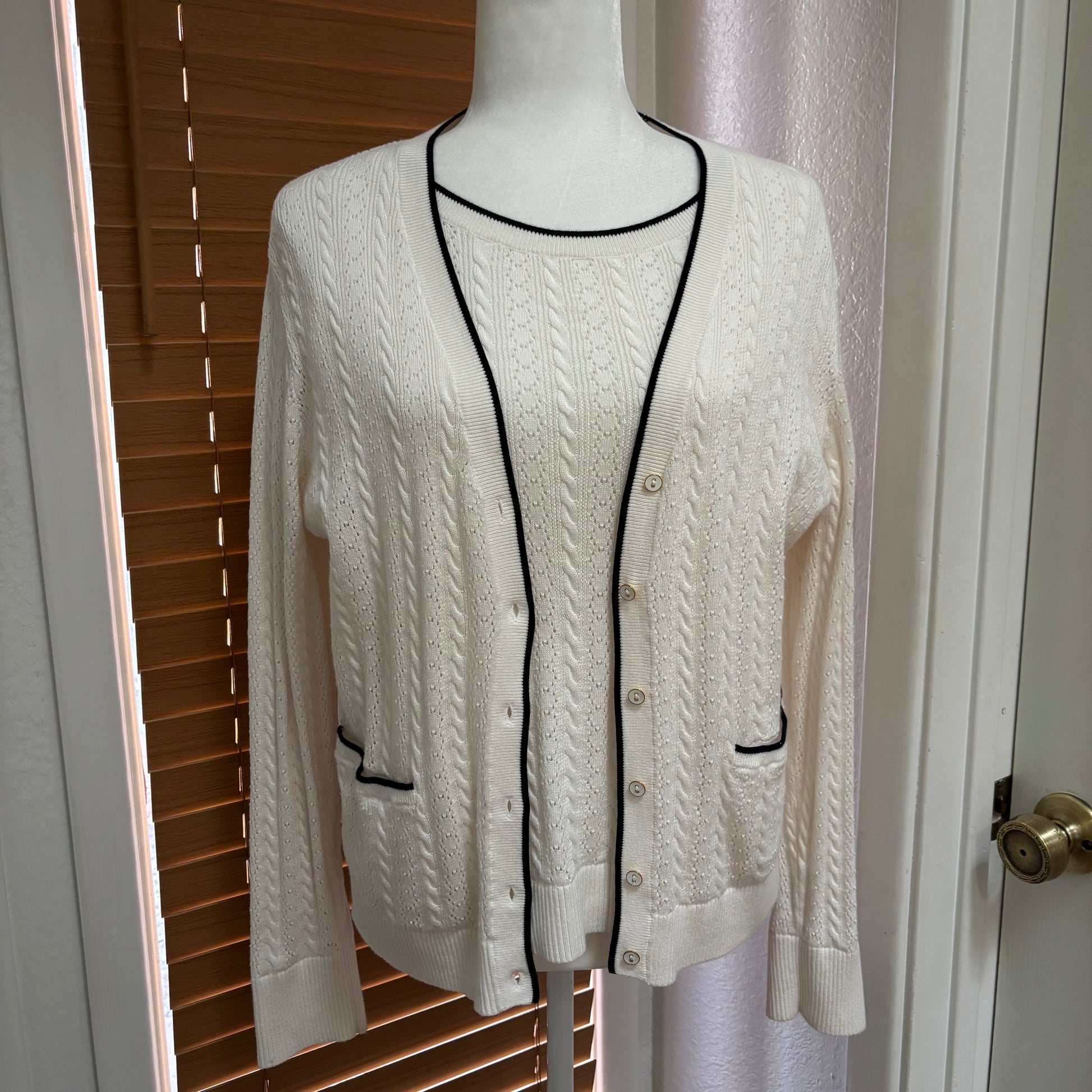 Brooks Brothers Cream Knit Cardigan & Matching Shell Top – Size Large