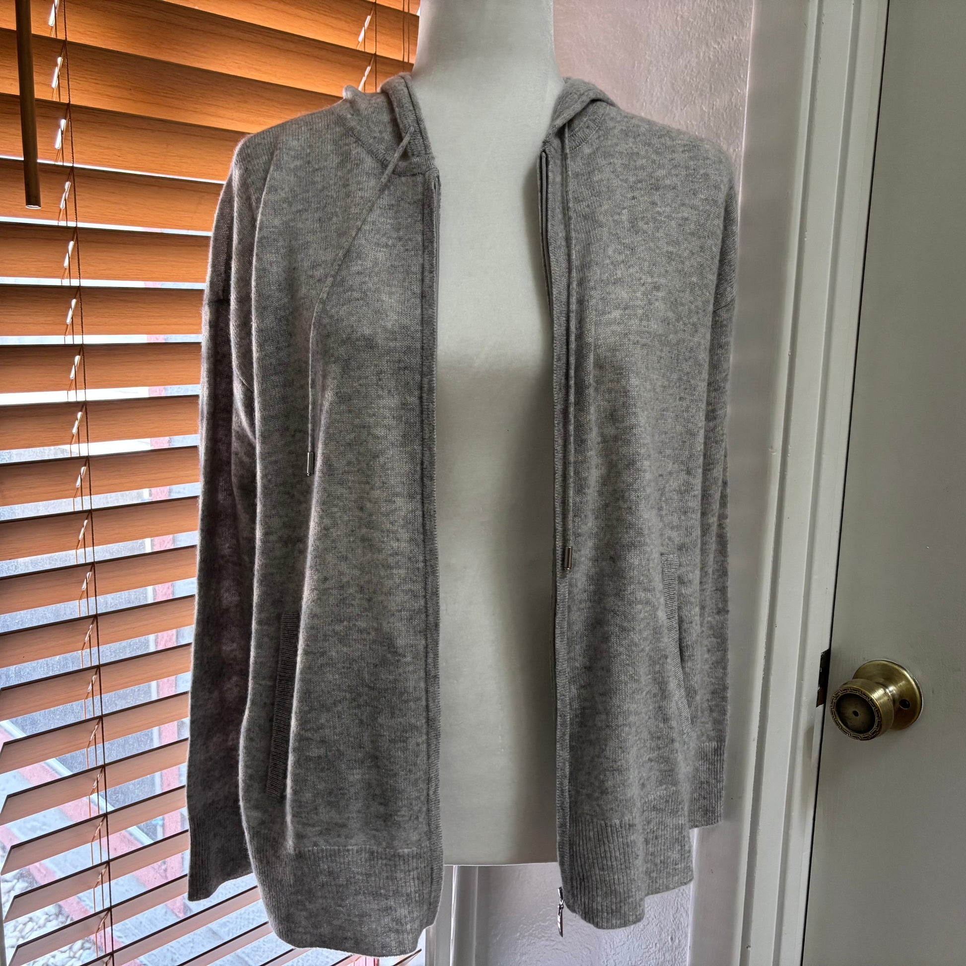 Charter Club 100% Cashmere Zip-Front Hooded Cardigan – Ice Grey Heather, Size Large