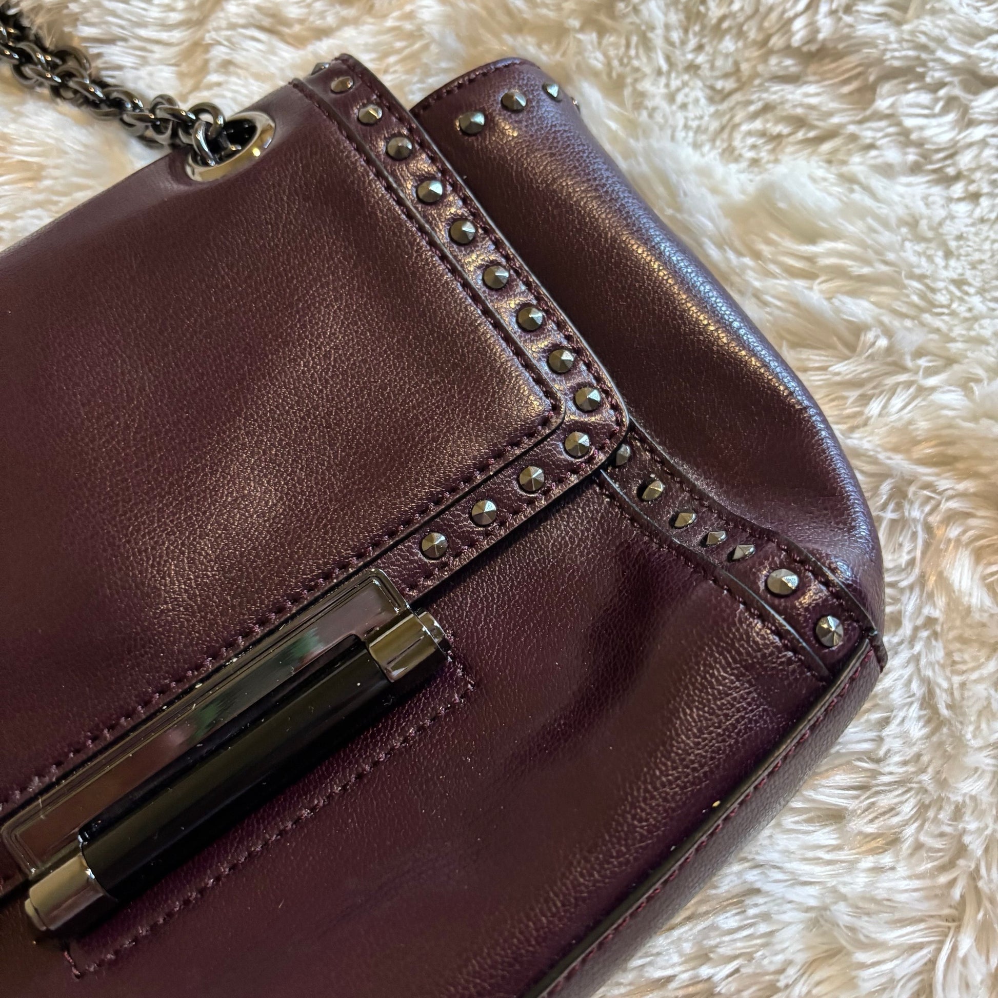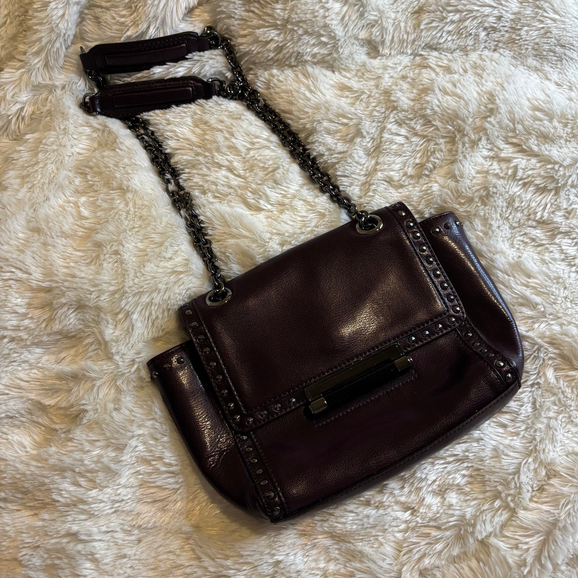 Diane von Furstenberg DVF Studded Leather Shoulder Bag with Chain Strap – Purple