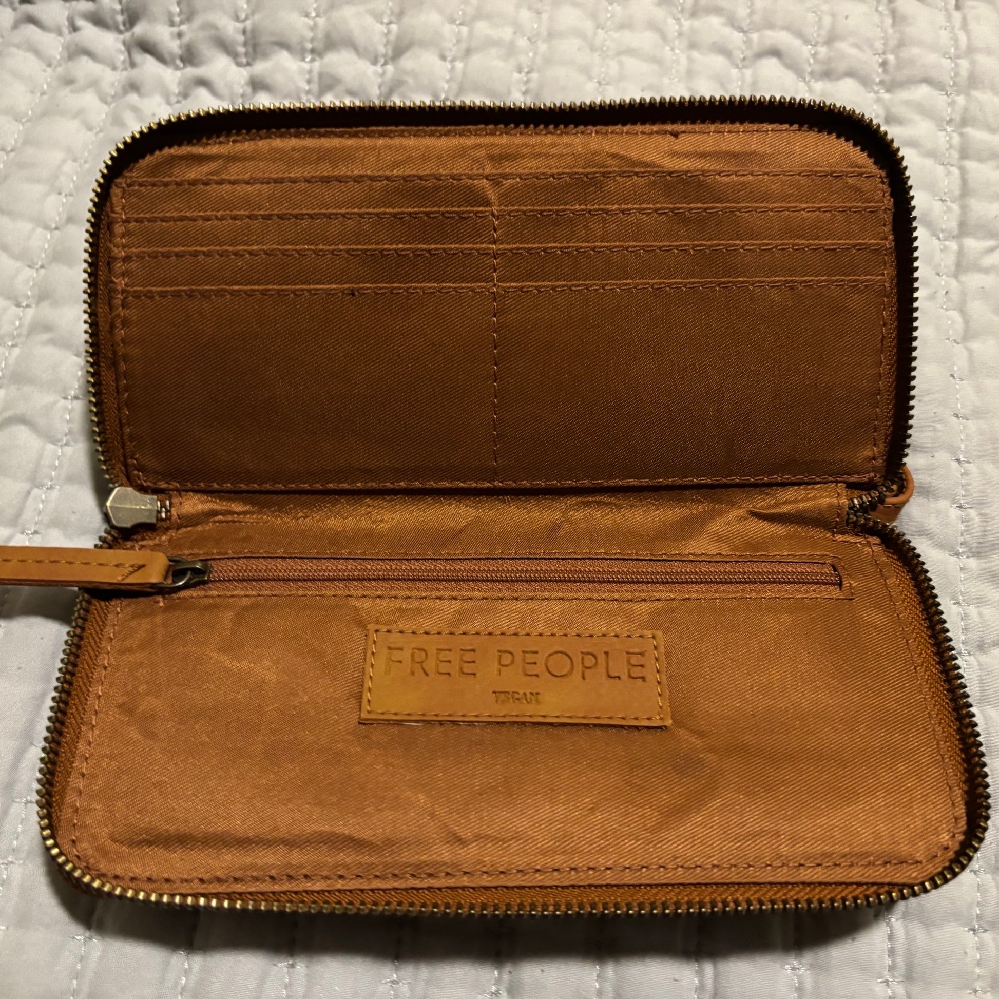 Free People Vegan Leather Wristlet Wallet – Distressed Brown Zip Around Clutch