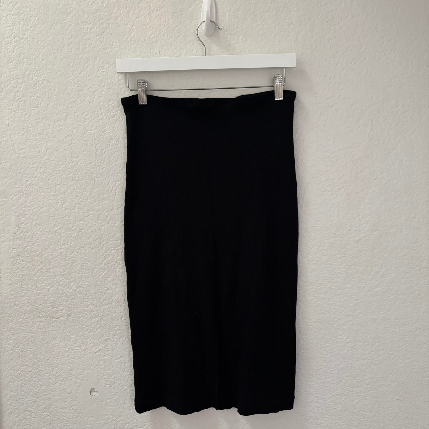 Reformation Black Ribbed Bodycon Midi Skirt Women’s Size L