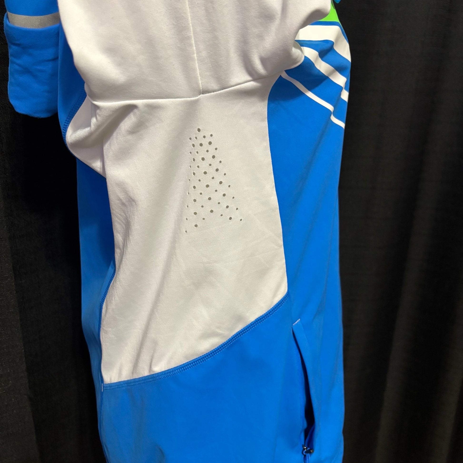 Sporty style meets performance functionality in this vibrant blue and green chevron training jacket with white accents. Lightweight and breathable, it features built-in ventilation to keep you cool during workouts, training, or outdoor activities. With a sleek silhouette, full-zip front, and high collar, it combines Helly Hansen’s technical expertise with versatile everyday style.